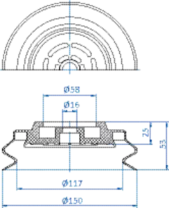 Bellows vacuum cup diam. 150 mm (1.5 bellows) NBR black