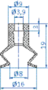 Bellows vacuum cup diam. 16 mm (1.5 bellows) CR black