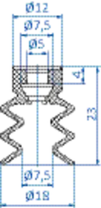 Bellows vacuum cup diam. 18 mm (2.5 bellows) PUR blue