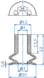 Bellows vacuum cup diam. 20 mm (1.5 bellows) silicone transparent