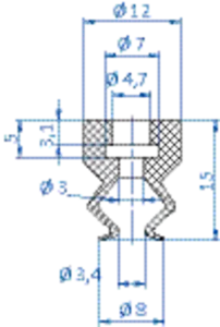 Bellows vacuum cup diam. 8 mm (1.5 bellows) silicone red