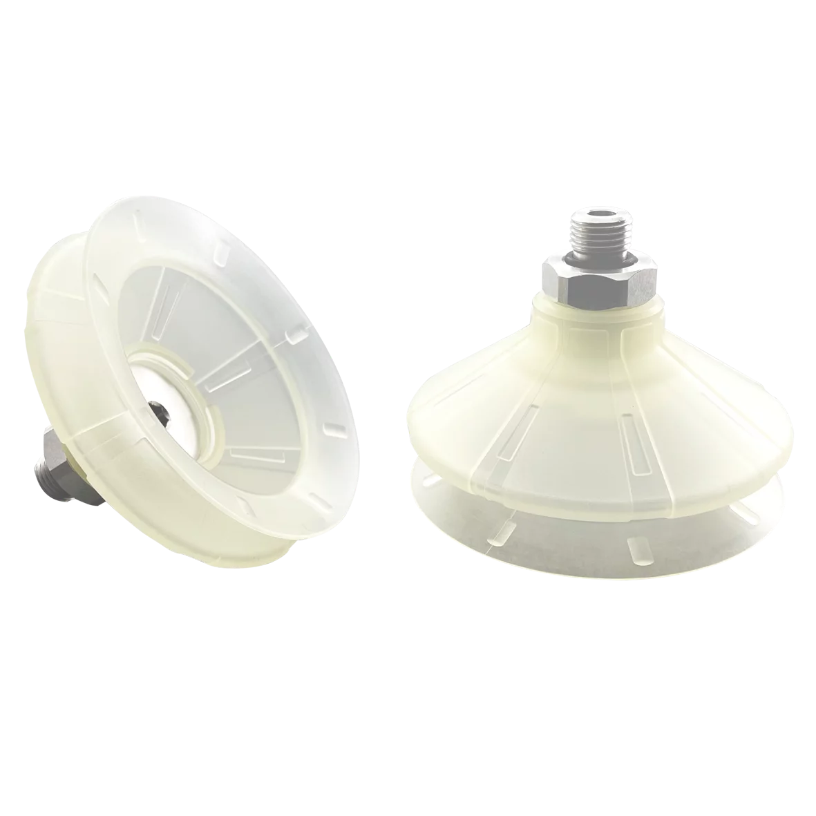 Bellows vacuum cup diam. 82 mm (1.5 bellows) TPU transparent, with Fitting G1-4-male
