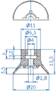 Flat-vacuum-cup-diam.-20-mm-Vulkollan-brown