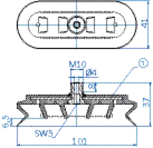 Oval vacuum cup 100×40 mm (1.5 bellows) NBR black