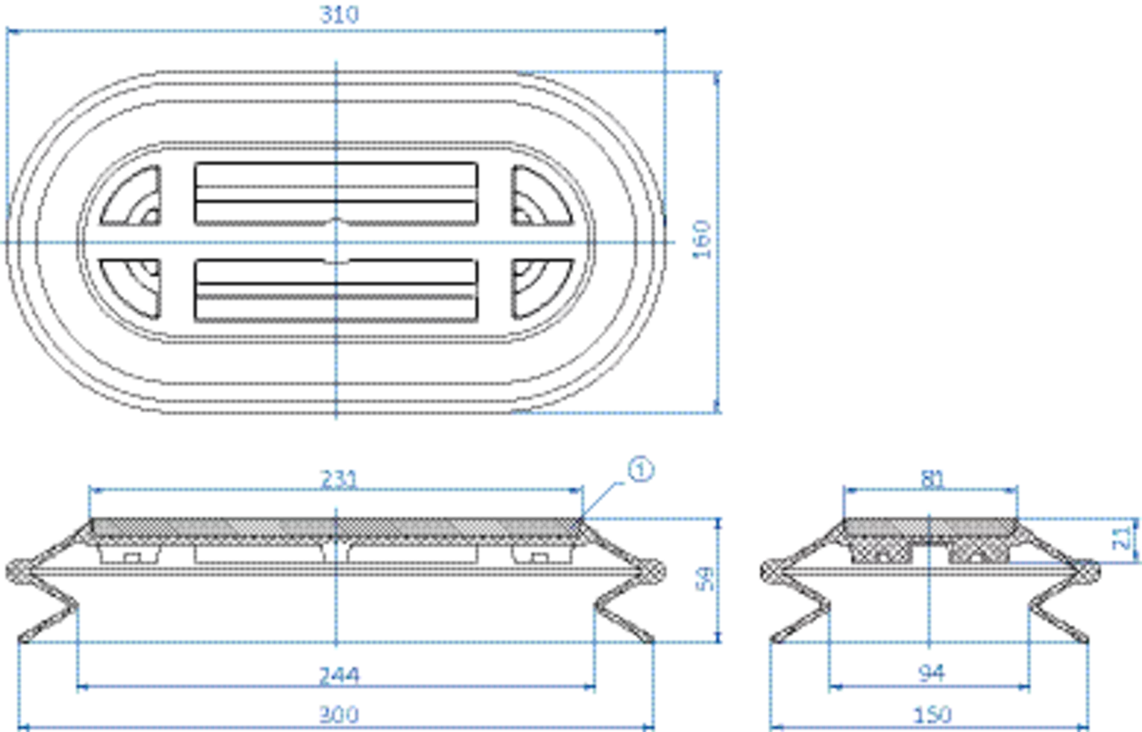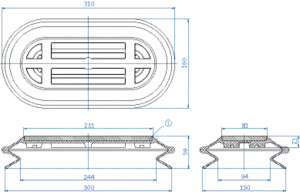 Oval vacuum cup 300×150 mm (1.5 bellows) NBR grey