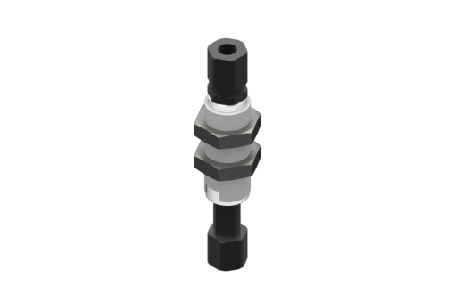 Non-rotative suspension with M10x1 threaded body, stroke 10 mm, M5, with 2 nuts